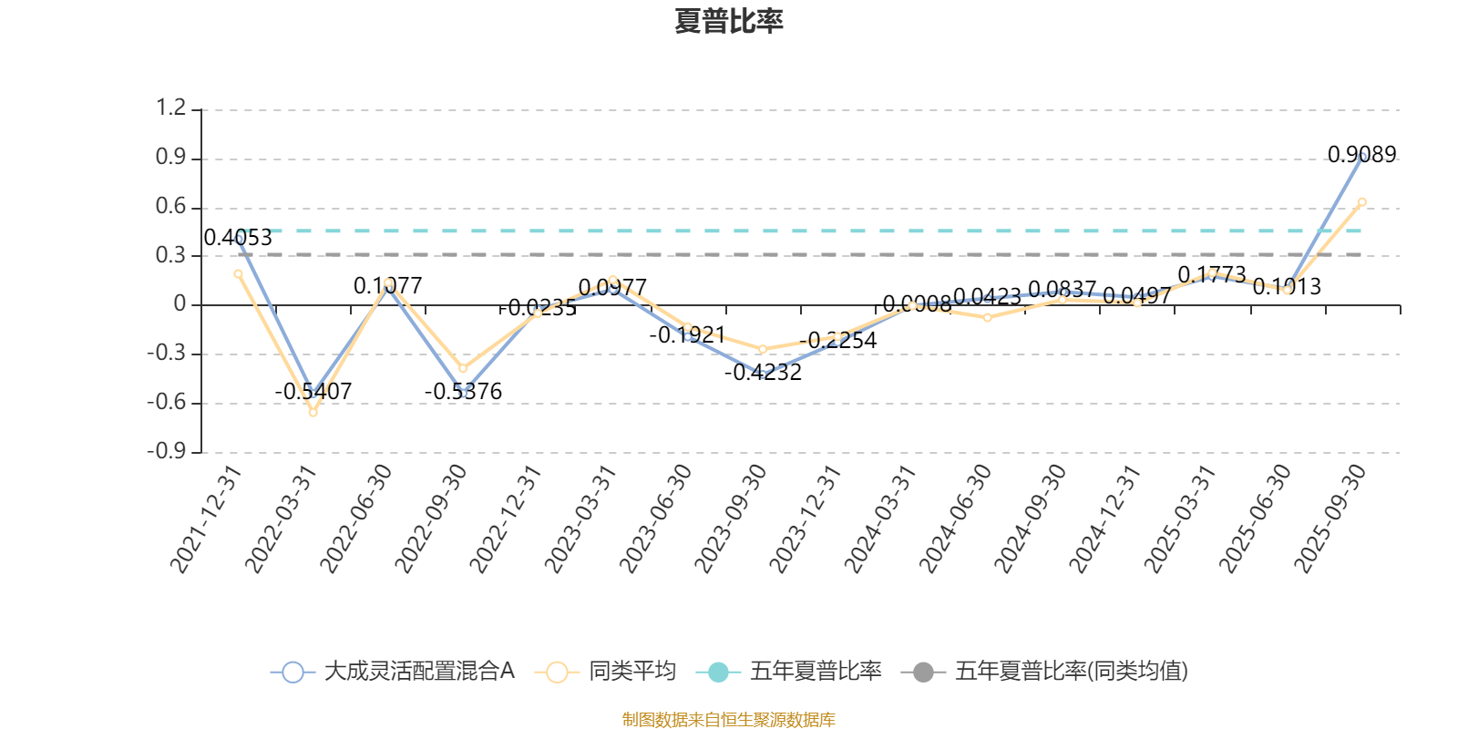 截至9月30日,基金近三年夏普比率为0.5952,位于同类可比基金546/1285。