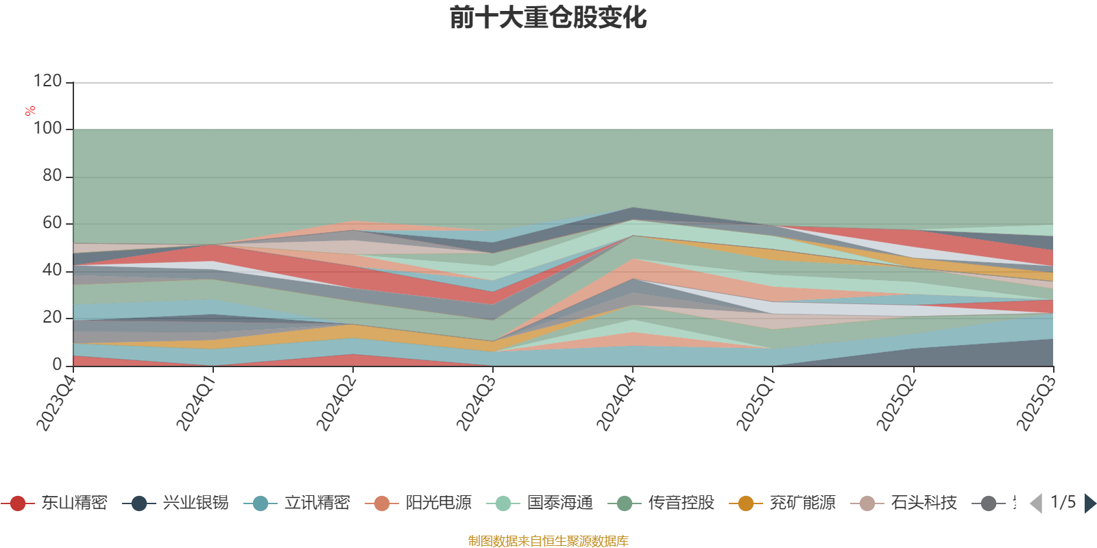 该基金持股集中度较高。截至2025年三季度末,基金十大重仓股分别是兴业银锡、立讯精密、泰恩康、工业富联、中曼石油、世运电路、中兴通讯、恩华药业、迈普医学、沪电股份。