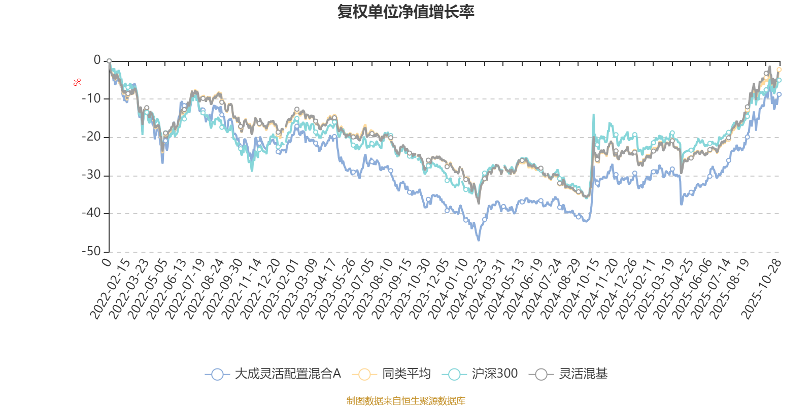 截至10月28日,大成灵活配置混合A近三个月复权单位净值增长率为18.55%,位于同类可比基金404/1287;近半年复权单位净值增长率为40.27%,位于同类可比基金267/1287;近一年复权单位净值增长率为30.88%,位于同类可比基金406/1287;近三年复权单位净值增长率为23.48%,位于同类可比基金489/1286。