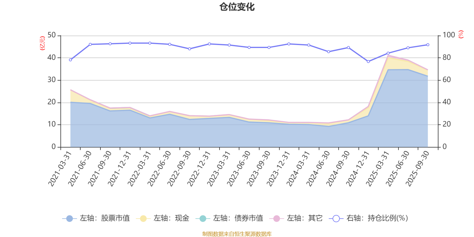 据定期报告数据统计,近三年平均股票仓位为88.6%,同类平均为88.24%。2022年一季度末基金达到93.24%的最高仓位,2024年末最低,为76.73%。