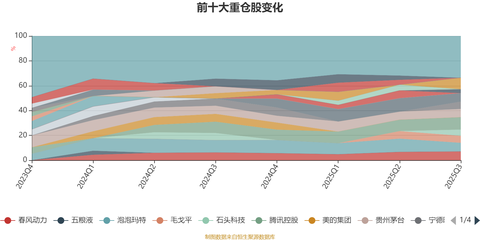 该基金持股集中度较高。截至2025年三季度末,基金十大重仓股分别是腾讯控股、阿里巴巴-W、春风动力、泡泡玛特、老铺黄金、贵州茅台、宁德时代、毛戈平、石头科技、药明康德。