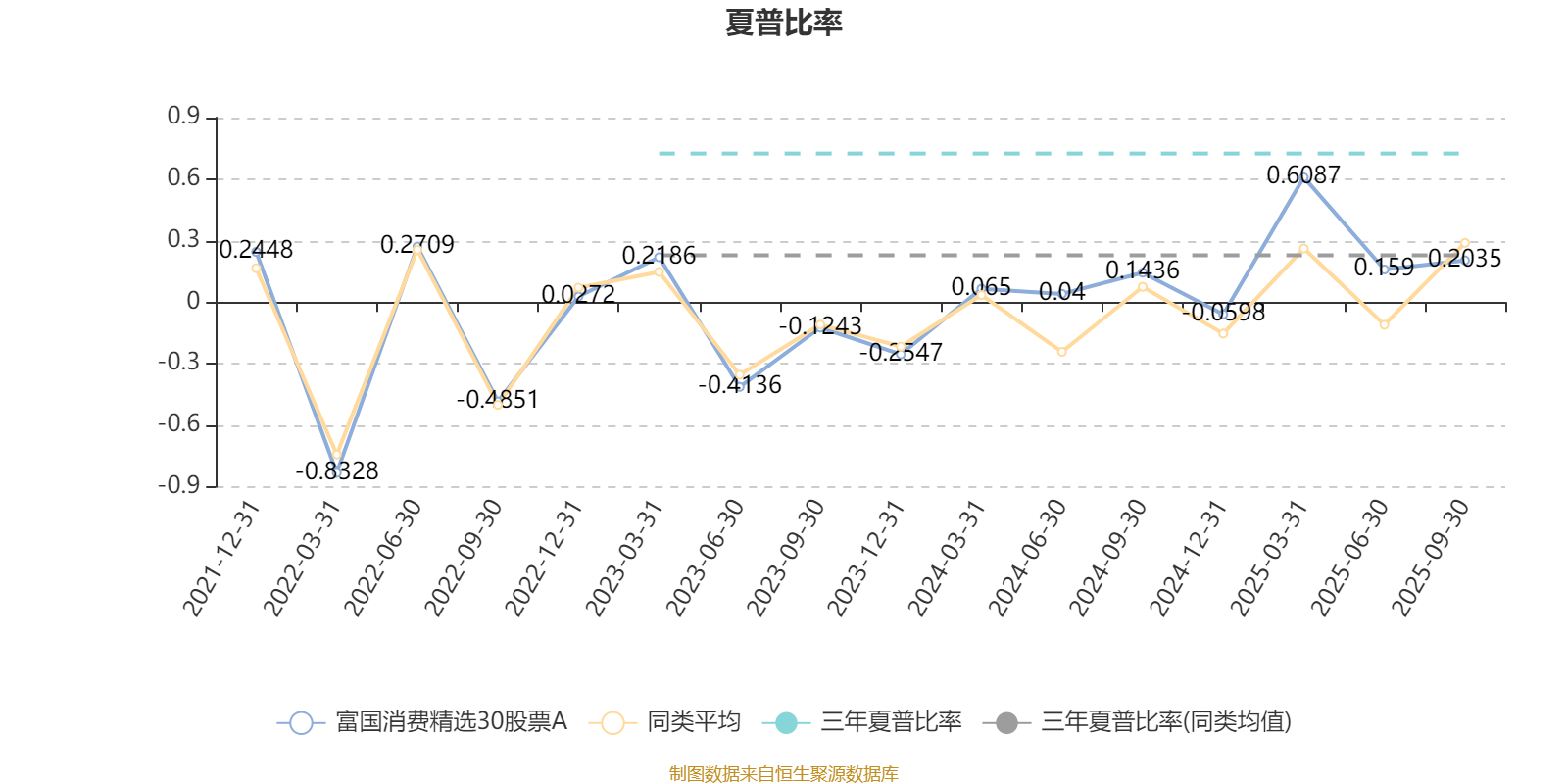 截至9月30日,基金近三年夏普比率为0.725,位于同类可比基金2/40。