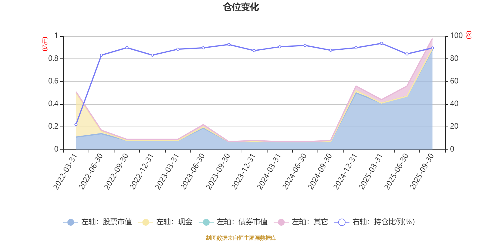 据定期报告数据统计,近三年平均股票仓位为89.06%,同类平均为88.42%。2025年一季度末基金达到93.63%的最高仓位,2022年一季度末最低,为22.09%。