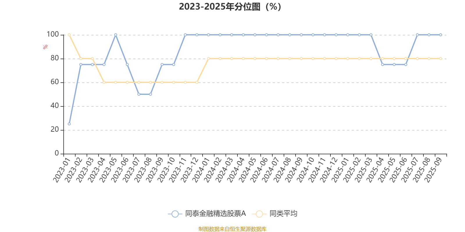 通过所选区间该基金净值增长率分位图,可以观察该基金与同类基金业绩比较情况。图为坐标原点到区间内某时点的净值增长率在同类基金中的分位数。
