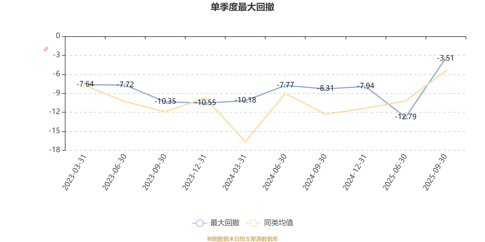 截至10月27日,基金近三年最大回撤为22.03%,同类可比基金排名11/87。单季度最大回撤出现在2025年二季度,为12.79%。