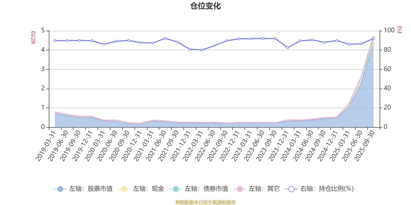 据定期报告数据统计,近三年平均股票仓位为89.33%,同类平均为88.23%。2021年上半年末基金达到92.06%的最高仓位,2022年一季度末最低,为80.09%。