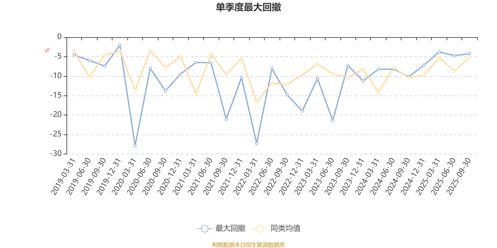 截至10月27日,基金近三年最大回撤为30.43%,同类可比基金排名560/1274。单季度最大回撤出现在2020年一季度,为27.89%。