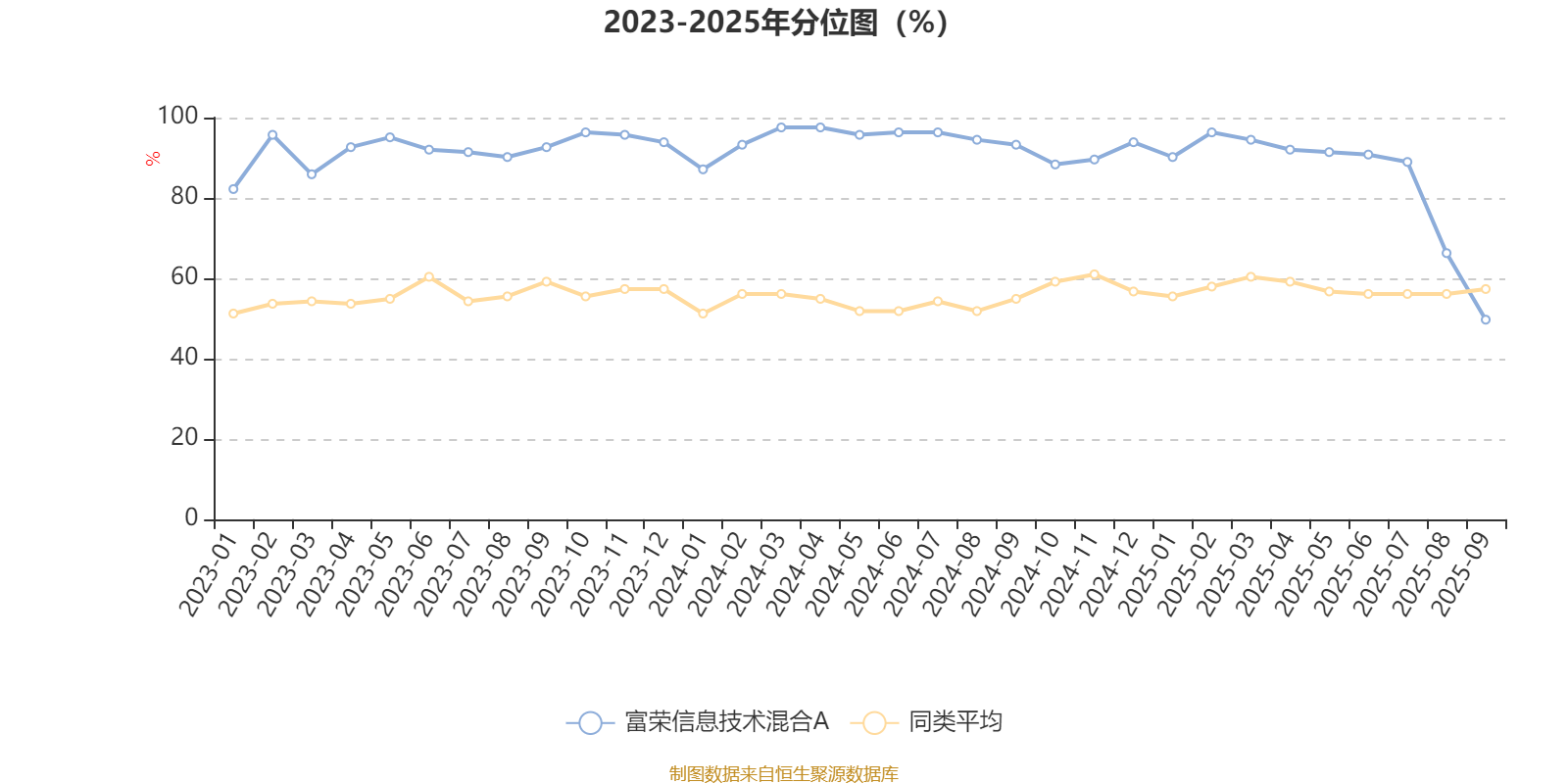 通过所选区间该基金净值增长率分位图,可以观察该基金与同类基金业绩比较情况。图为坐标原点到区间内某时点的净值增长率在同类基金中的分位数。