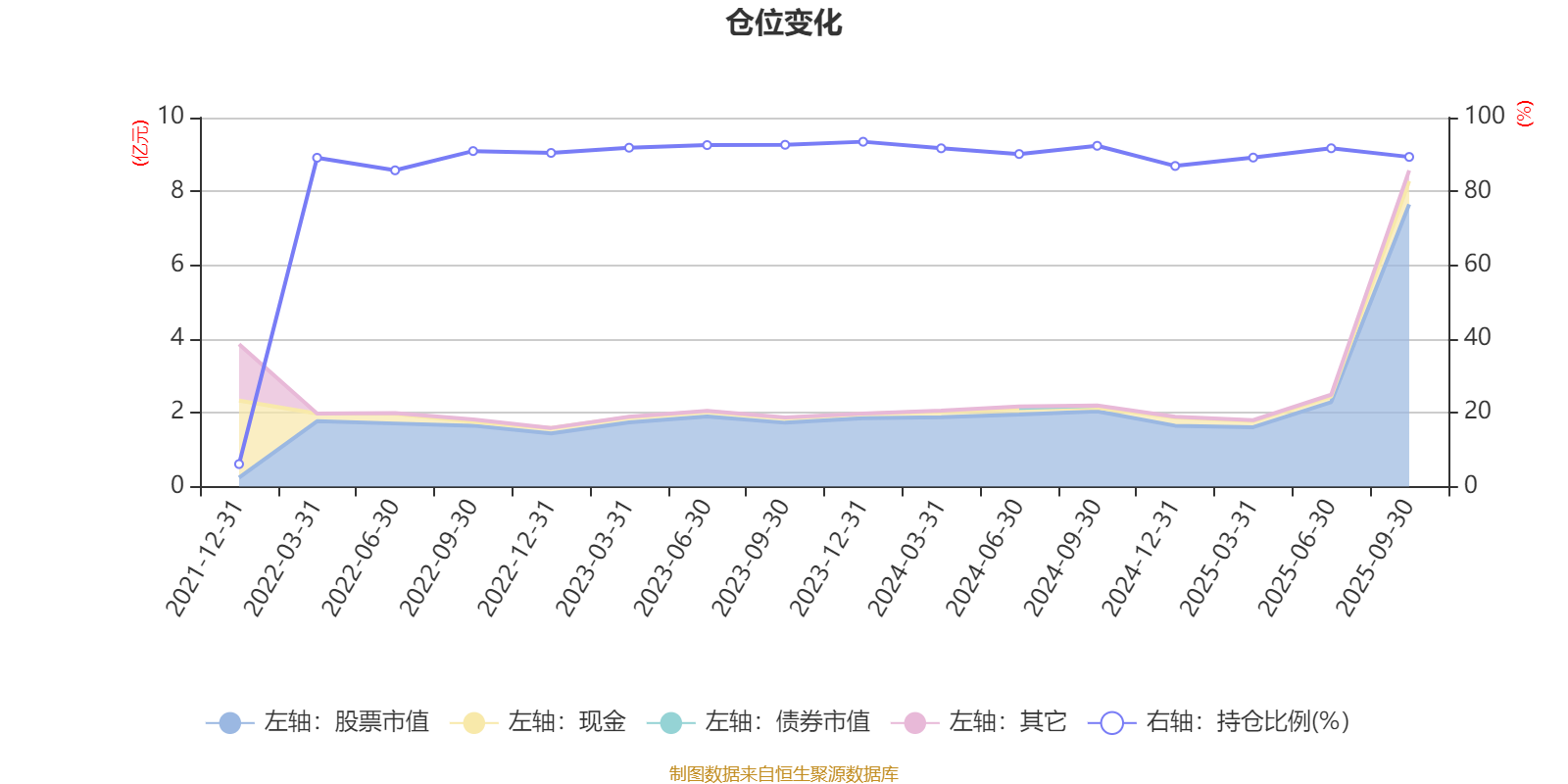 据定期报告数据统计,近三年平均股票仓位为91.01%,同类平均为86.77%。2023年末基金达到93.46%的最高仓位,2021年末最低,为6.1%。