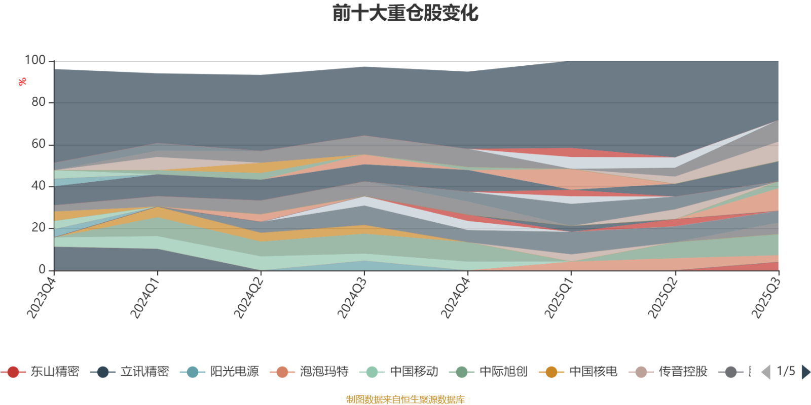该基金持股集中度较高。截至2025年三季度末,基金十大重仓股分别是深南电路、新易盛、中际旭创、沪电股份、天孚通信、腾讯控股、鹏鼎控股、东山精密、泡泡玛特、寒武纪。