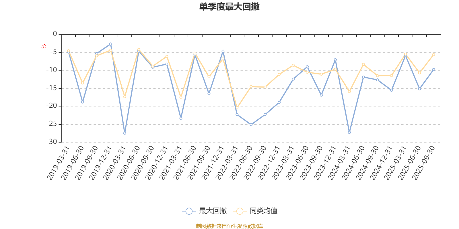 截至10月27日,基金近三年最大回撤为48.66%,同类可比基金排名144/156。单季度最大回撤出现在2020年一季度,为27.51%。