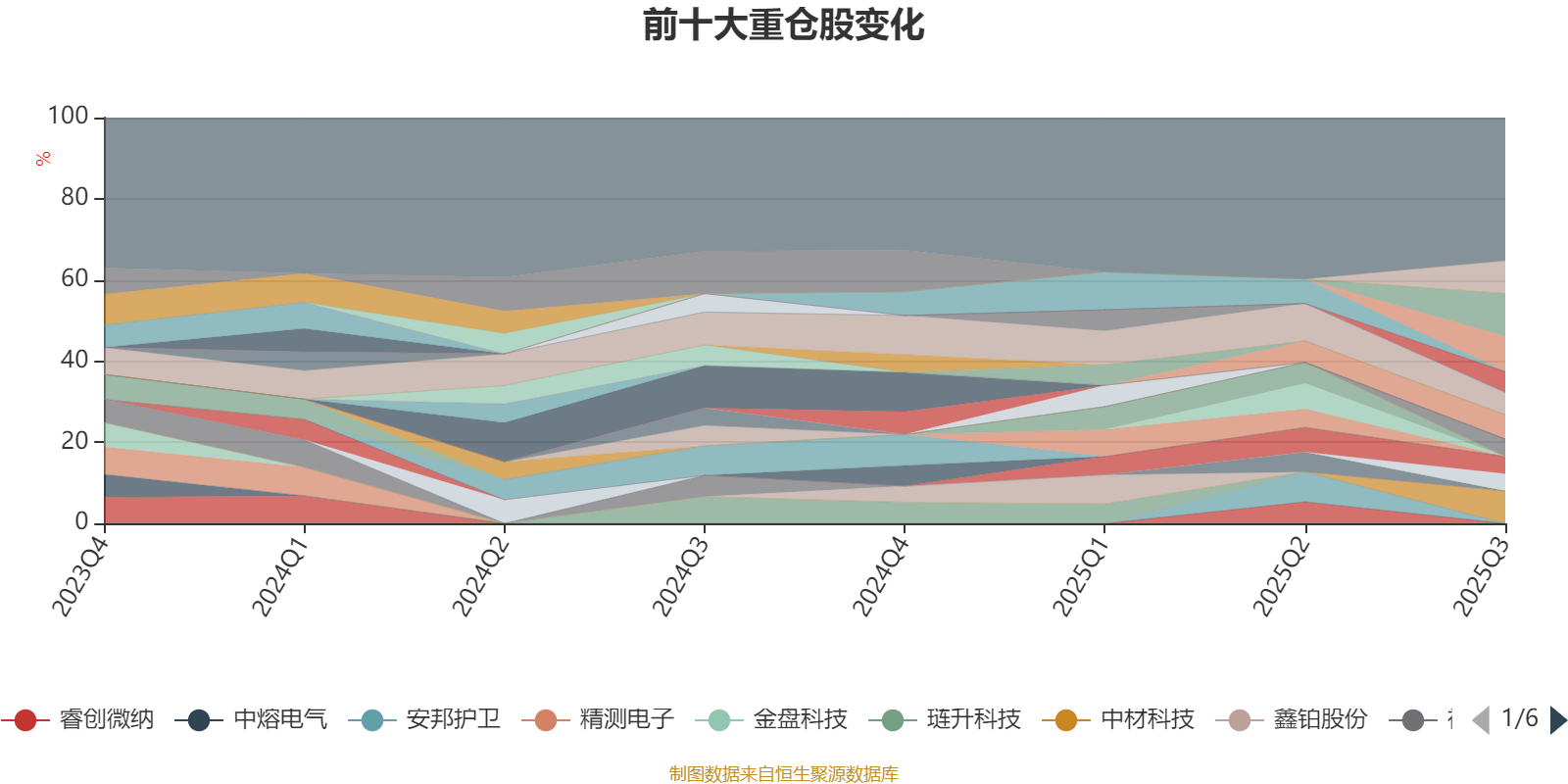 该基金持股集中度较高,近2年前十大重仓股集中度长期超过60%。截至2025年三季度末,基金十大重仓股分别是博迁新材、东材科技、隆扬电子、中材科技、云路股份、思特威、工业富联、海优新材、杰普特、三棵树。