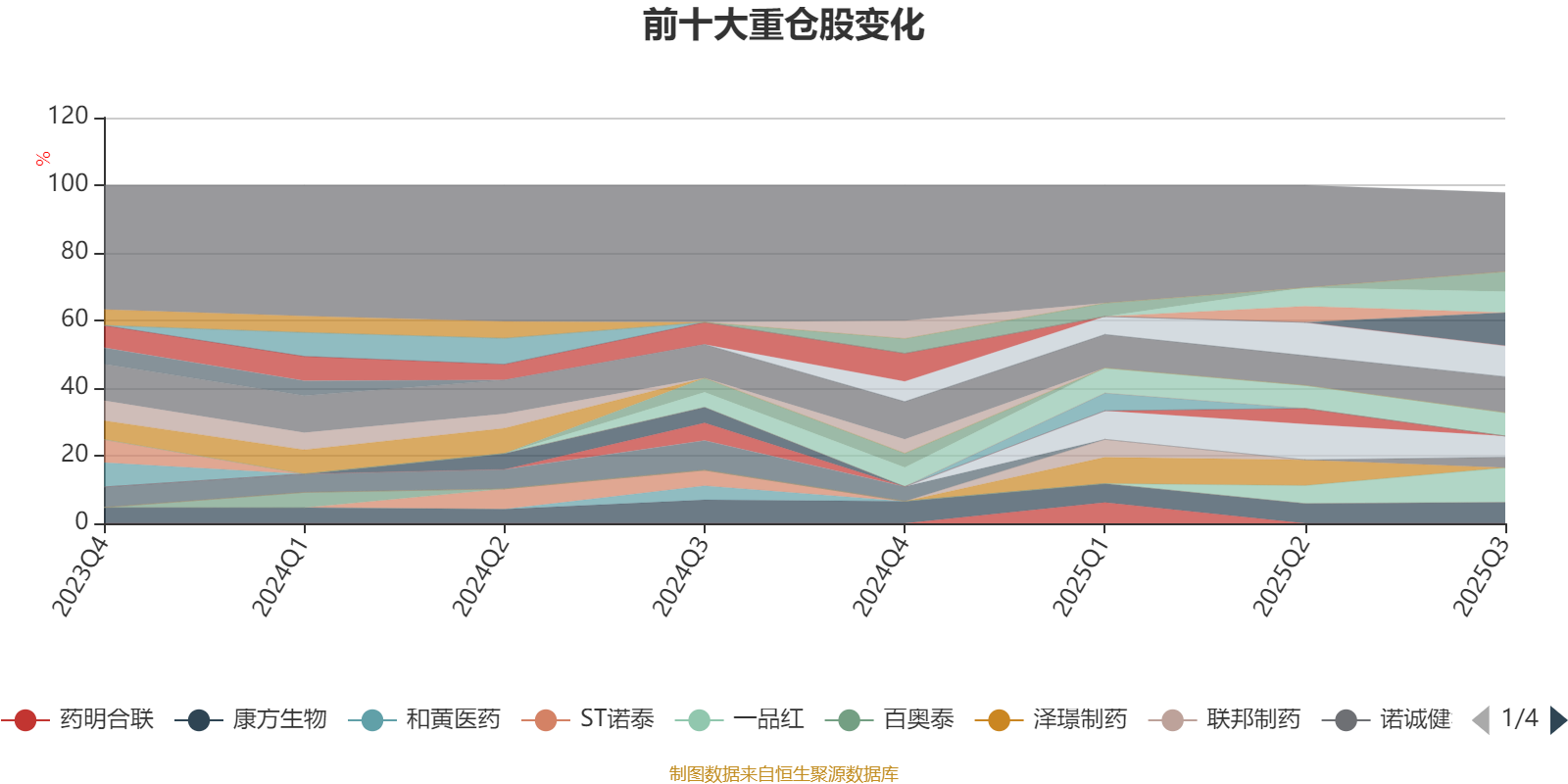 该基金持股集中度较高。截至2025年三季度末,基金十大重仓股分别是百利天恒、一品红、微创医疗、信达生物、科伦博泰生物-B、康方生物、三生制药、热景生物、海思科、诺诚健华。