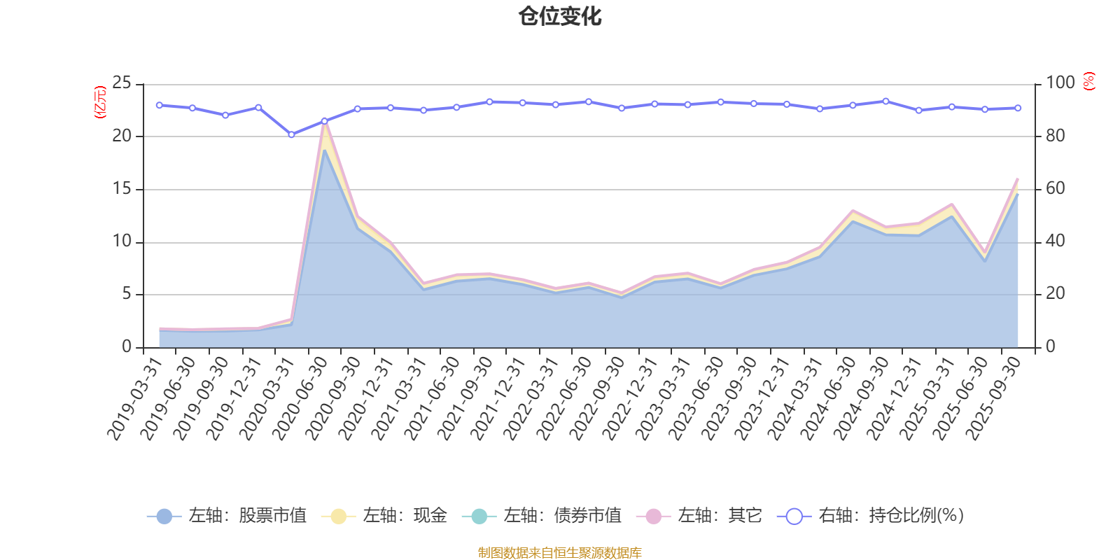据定期报告数据统计,近三年平均股票仓位为91.77%,同类平均为88.38%。2024年三季度末基金达到93.47%的最高仓位,2020年一季度末最低,为80.82%。