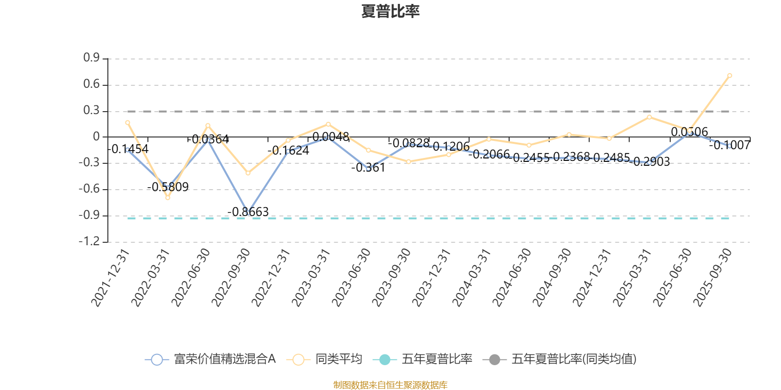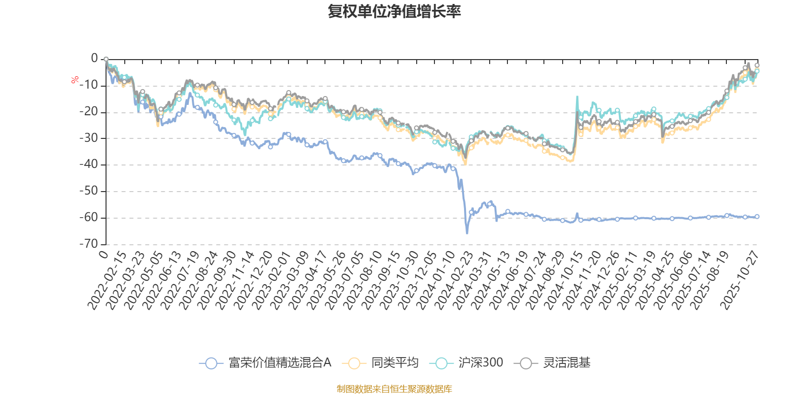 截至10月27日,富荣价值精选混合A近三个月复权单位净值增长率为-0.27%,位于同类可比基金897/920;近半年复权单位净值增长率为1.95%,位于同类可比基金902/919;近一年复权单位净值增长率为3.25%,位于同类可比基金861/917;近三年复权单位净值增长率为-40.83%,位于同类可比基金909/912。