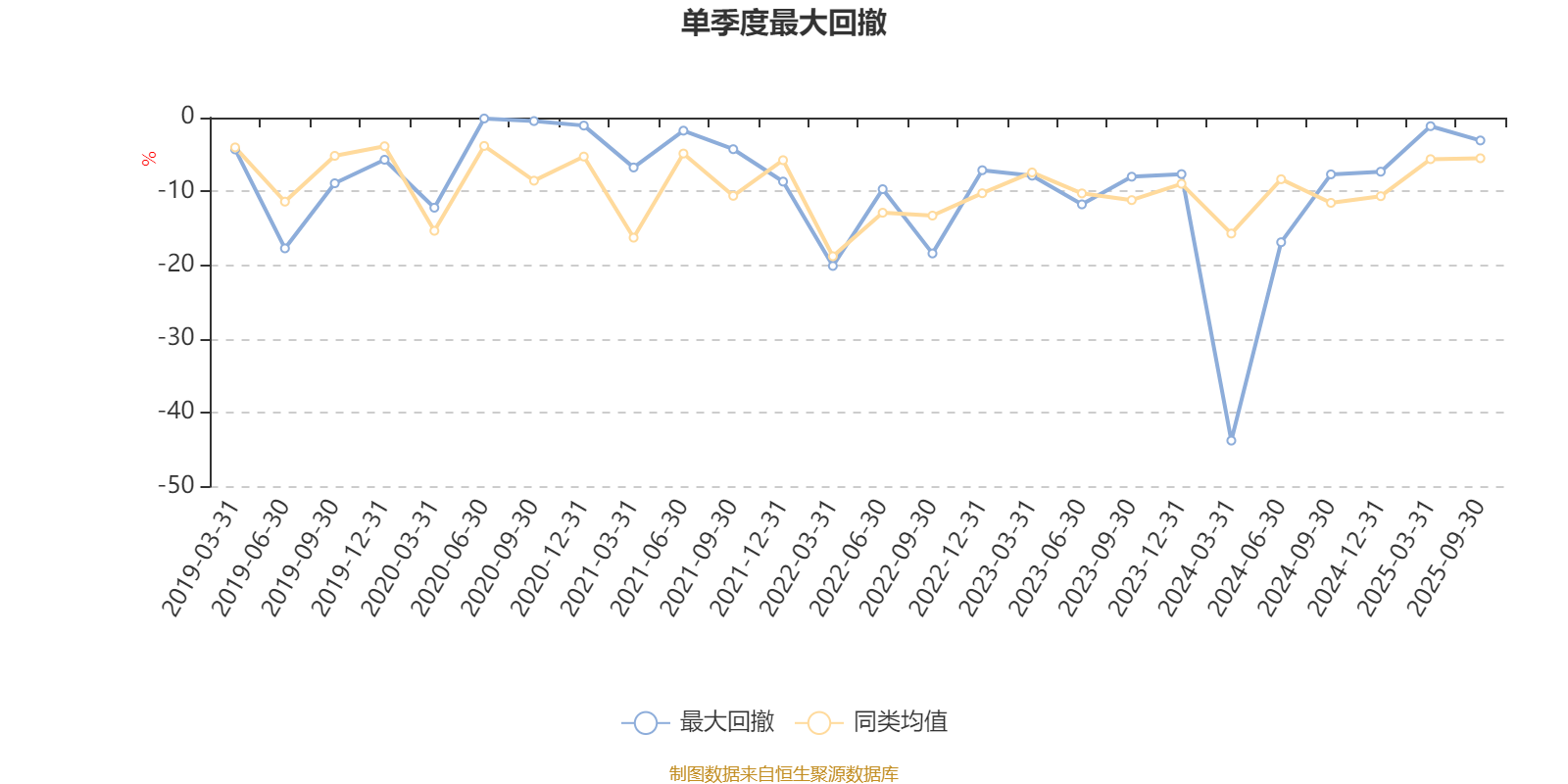 截至10月27日,基金近三年最大回撤为53.01%,同类可比基金排名869/894。单季度最大回撤出现在2024年一季度,为43.77%。