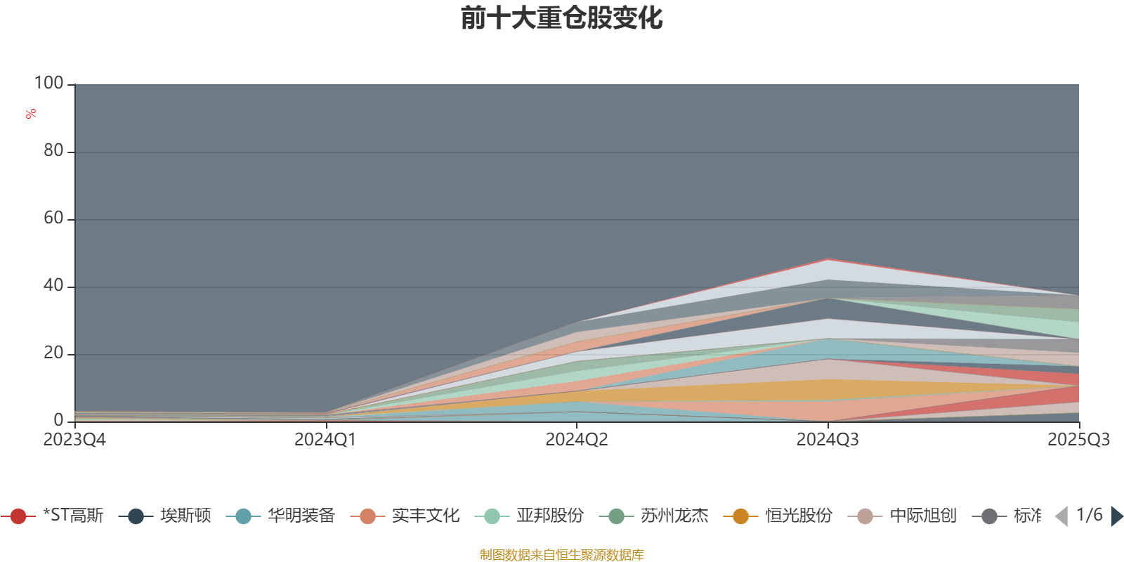 截至2025年三季度末,基金十大重仓股分别是中国稀土、宁德时代、华友钴业、杭州银行、科沃斯、新易盛、寒武纪、中际旭创、埃斯顿、指南针。