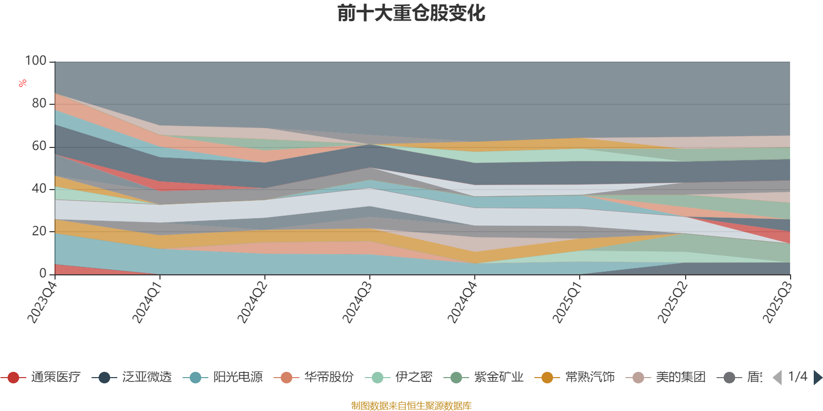 该基金持股集中度较高,近2年前十大重仓股集中度长期超过60%。截至2025年三季度末,基金十大重仓股分别是比亚迪、紫金矿业、潮宏基、泽璟制药、广发证券、泛亚微透、长源东谷、华测导航、明阳电气、科伦药业。