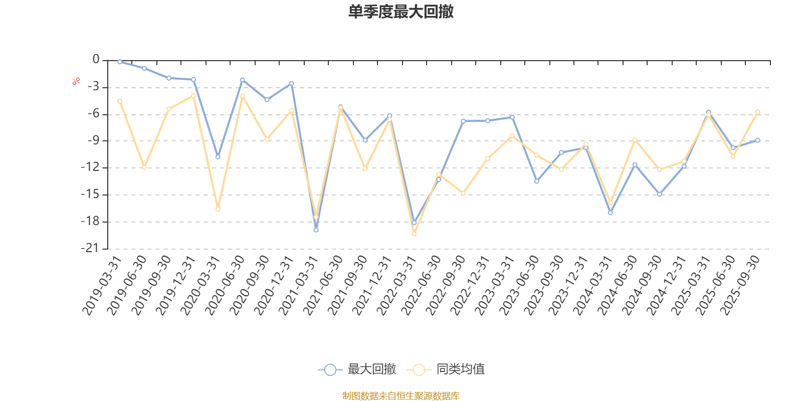 截至10月27日,基金近三年最大回撤为43.82%,同类可比基金排名276/363。单季度最大回撤出现在2021年一季度,为18.89%。