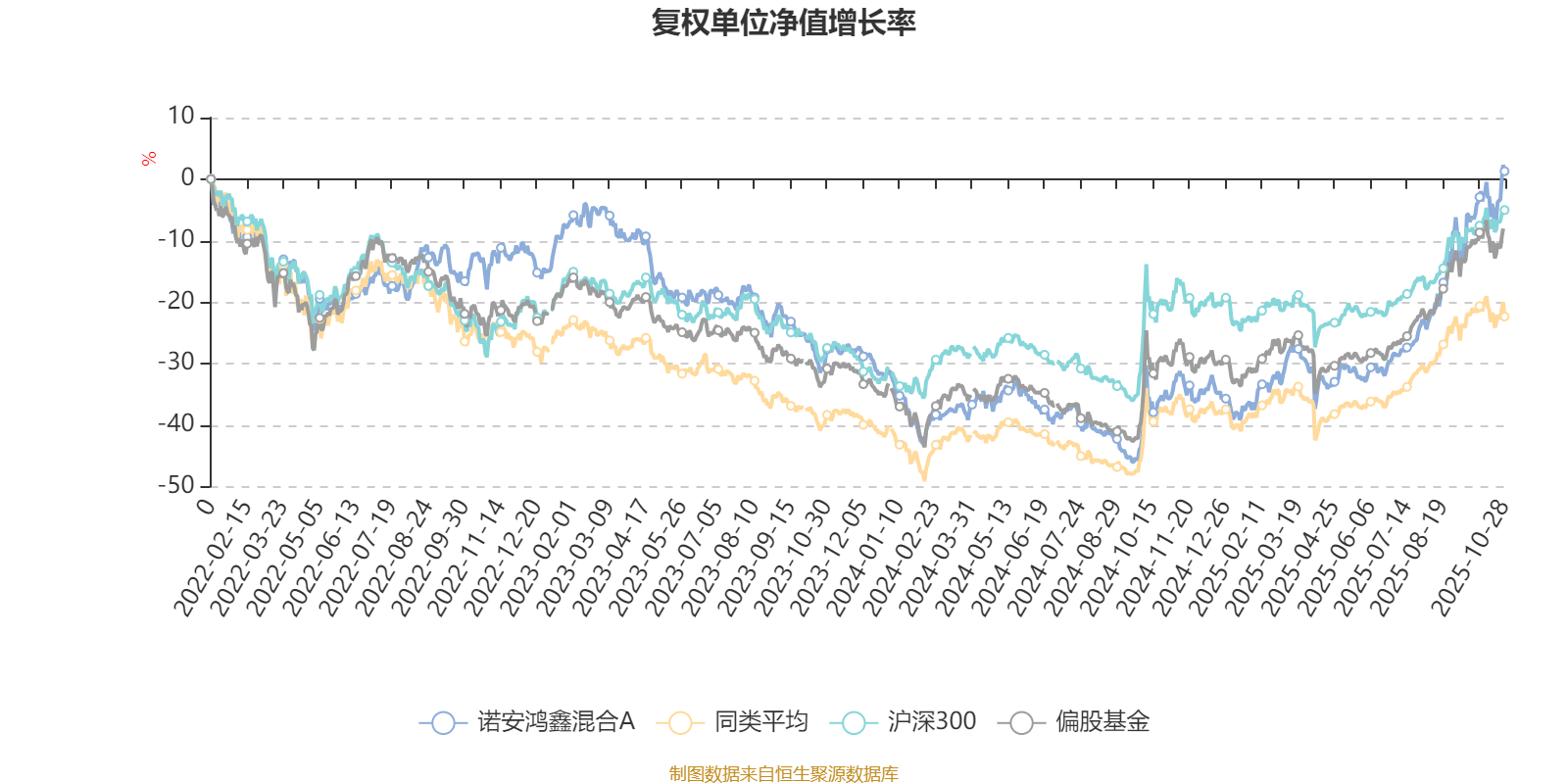 截至10月28日,诺安鸿鑫混合A近三个月复权单位净值增长率为32.60%,位于同类可比基金63/689;近半年复权单位净值增长率为51.97%,位于同类可比基金68/688;近一年复权单位净值增长率为54.21%,位于同类可比基金60/653;近三年复权单位净值增长率为20.73%,位于同类可比基金150/364。