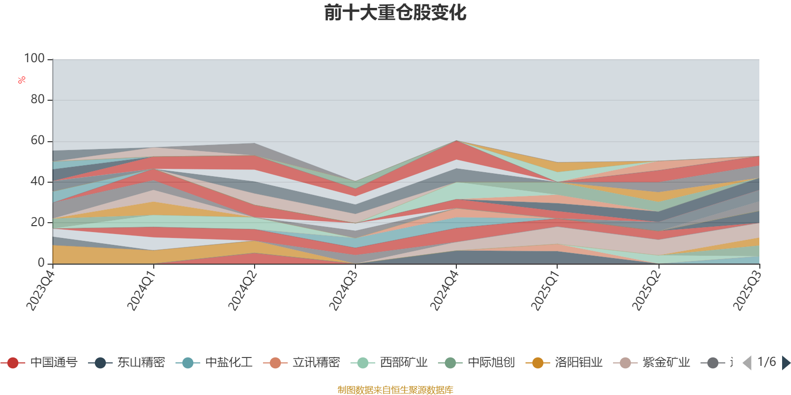 截至2025年三季度末,基金十大重仓股分别是紫金矿业、中芯国际、天山铝业、冰轮环境、明阳电气、中际旭创、金诚信、铜陵有色、洛阳钼业、中盐化工。
