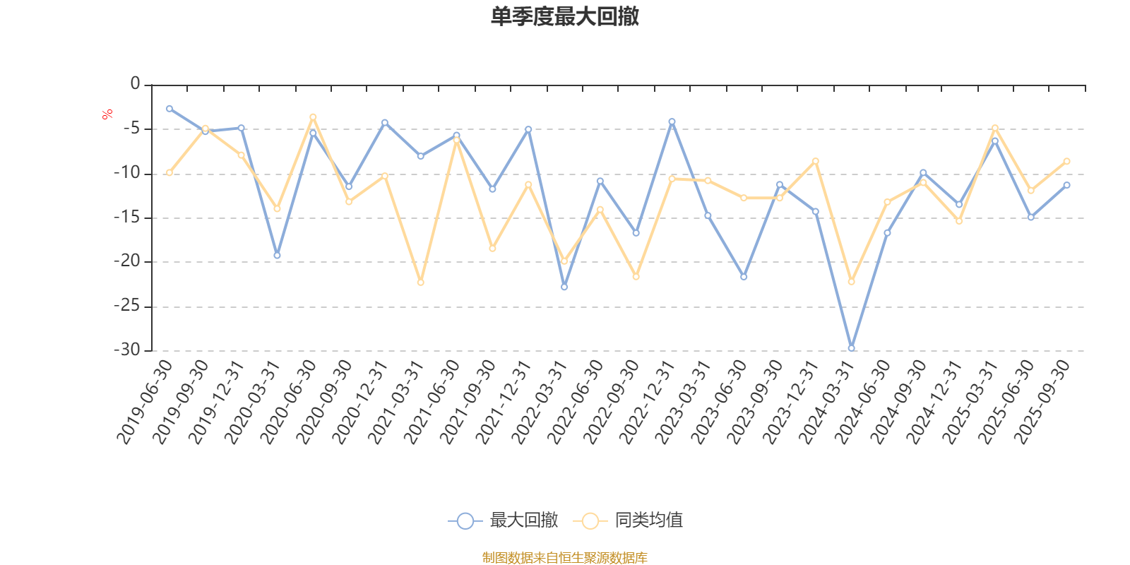 截至10月27日,基金近三年最大回撤为45.46%,同类可比基金排名60/75。单季度最大回撤出现在2024年一季度,为29.72%。