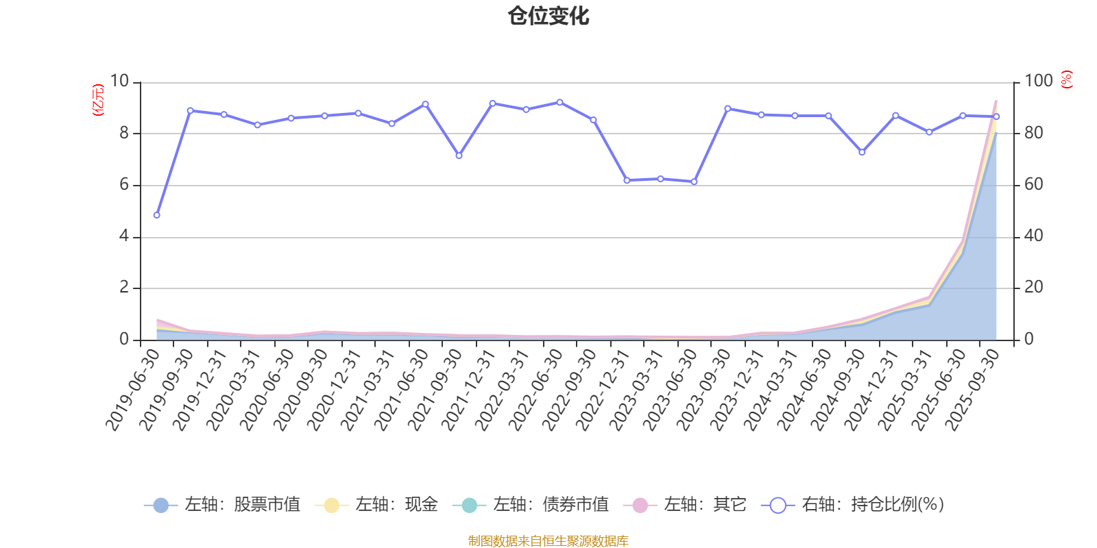 基金管理人在三季报中表示,本基金仍然坚持“寻找与时代相契合的超级大单品”这一核心策略,锚定未来两年有望上市且快速放量的标的,结构上赋予确定性更大的权重,以期在调整过后、向产业发展的下一阶段进发时,更早地占据有利位置。整体仓位变化不大,一直保持在较高水平运作。