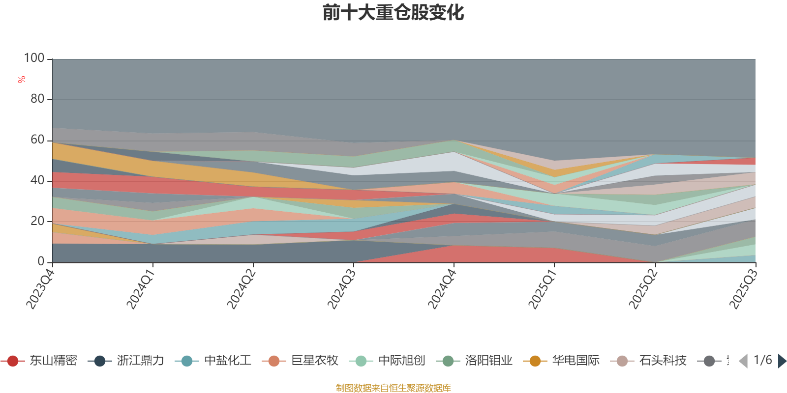 该基金持股集中度较高。截至2025年三季度末,基金十大重仓股分别是紫金矿业、中芯国际、天山铝业、冰轮环境、明阳电气、中际旭创、洛阳钼业、金诚信、中盐化工、工业富联。