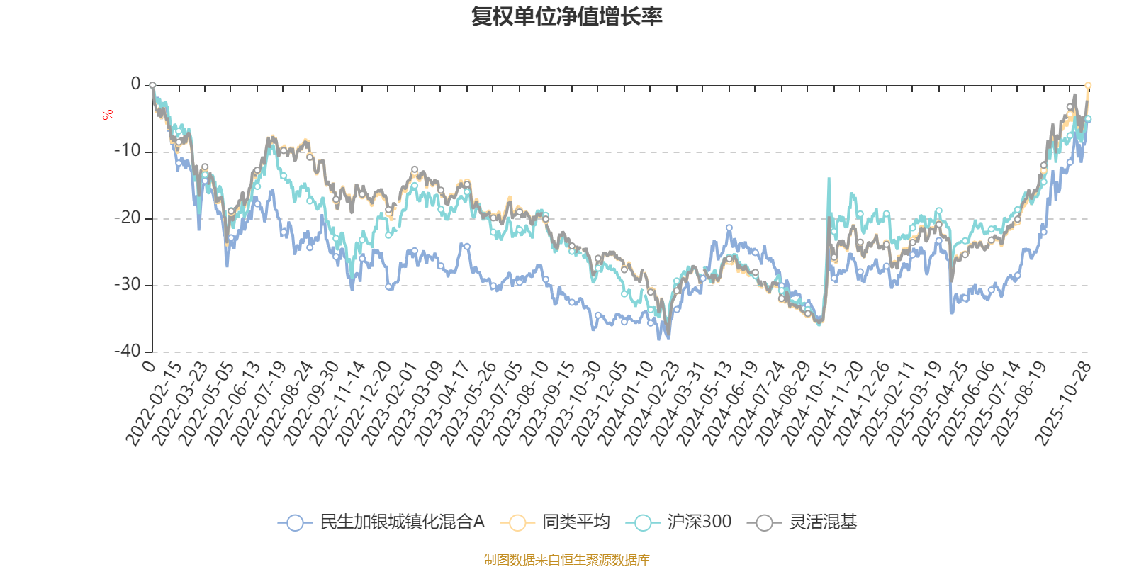 截至10月28日,民生加银城镇化混合A近三个月复权单位净值增长率为25.73%,位于同类可比基金249/1287;近半年复权单位净值增长率为40.39%,位于同类可比基金262/1287;近一年复权单位净值增长率为31.11%,位于同类可比基金413/1287;近三年复权单位净值增长率为35.67%,位于同类可比基金280/1286。