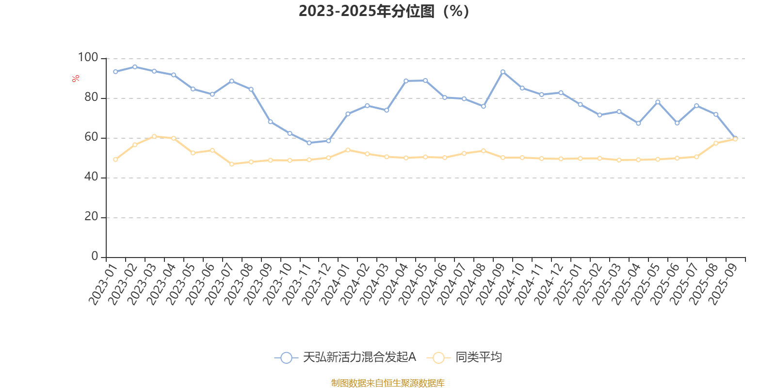 通过所选区间该基金净值增长率分位图,可以观察该基金与同类基金业绩比较情况。图为坐标原点到区间内某时点的净值增长率在同类基金中的分位数。