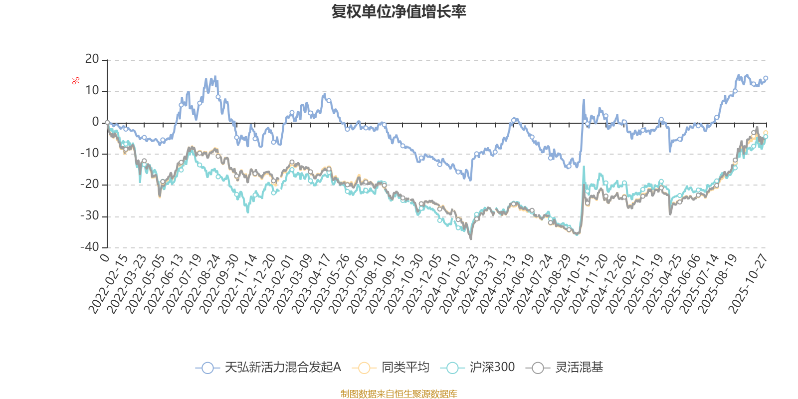 截至10月27日,天弘新活力混合发起A近三个月复权单位净值增长率为6.63%,位于同类可比基金878/1287;近半年复权单位净值增长率为20.60%,位于同类可比基金747/1287;近一年复权单位净值增长率为12.57%,位于同类可比基金874/1287;近三年复权单位净值增长率为20.89%,位于同类可比基金512/1286。