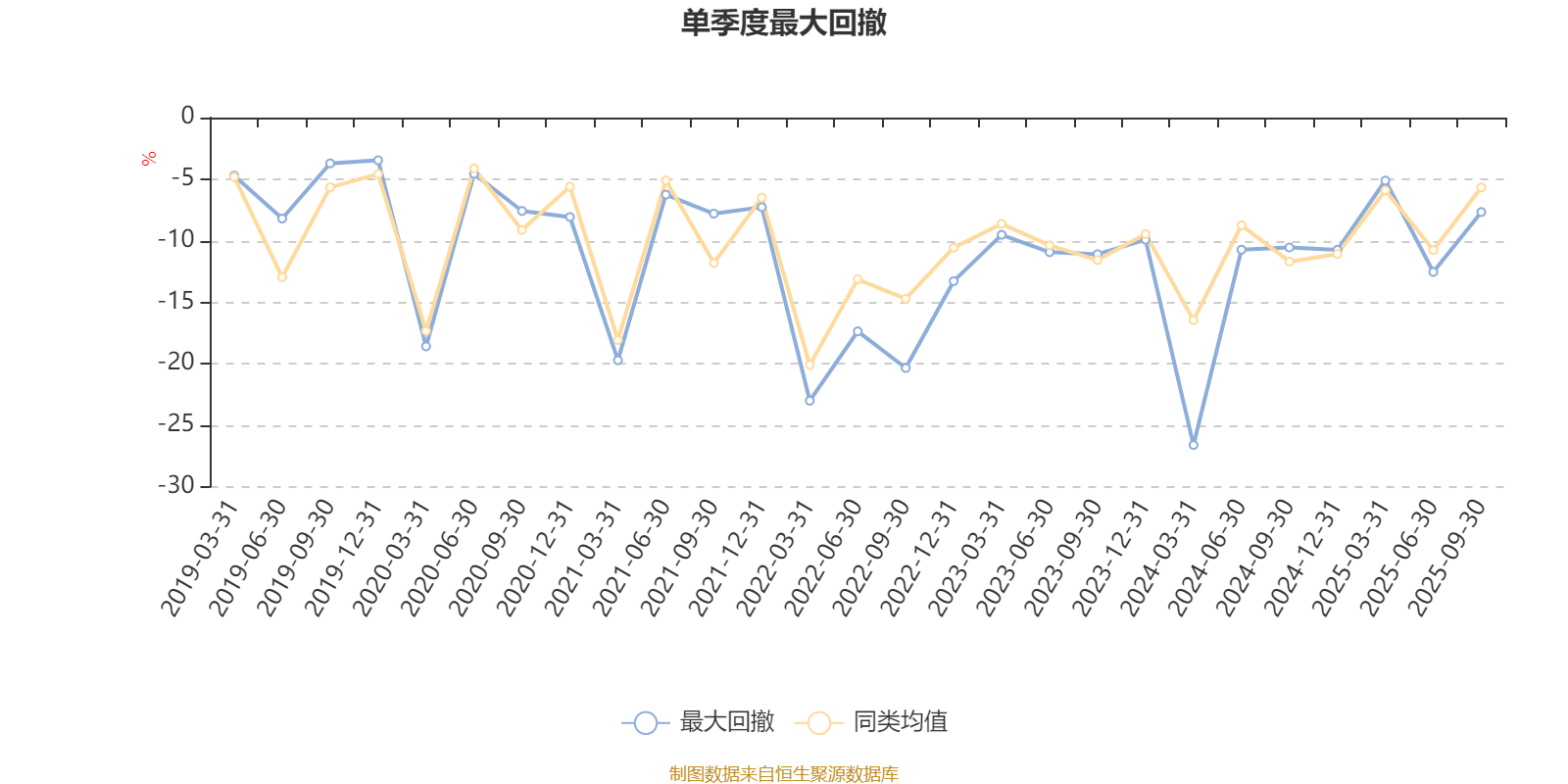 截至10月27日,基金近三年最大回撤为44.28%,同类可比基金排名422/513。单季度最大回撤出现在2024年一季度,为26.62%。