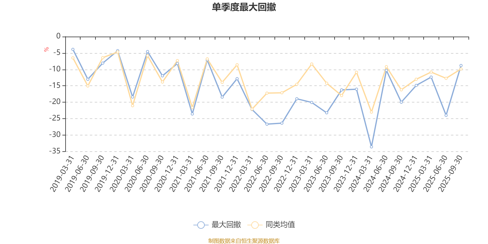截至10月27日,基金近三年最大回撤为65.93%,同类可比基金排名158/159。单季度最大回撤出现在2024年一季度,为33.61%。