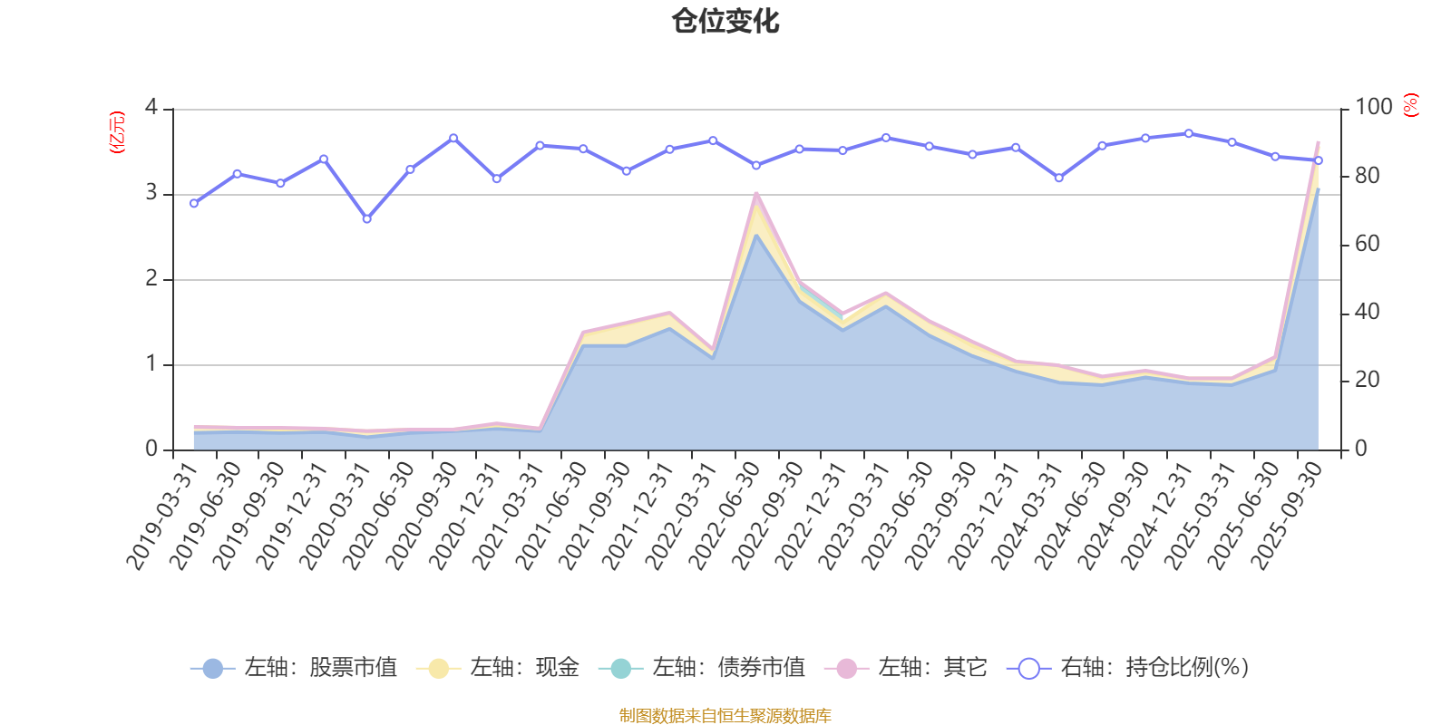据定期报告数据统计,近三年平均股票仓位为88.14%,同类平均为86.77%。2024年末基金达到92.78%的最高仓位,2020年一季度末最低,为67.71%。