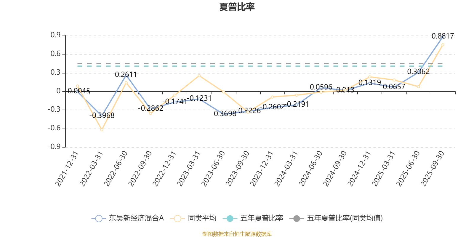 截至9月30日,基金近三年夏普比率为0.4314,位于同类可比基金149/159。