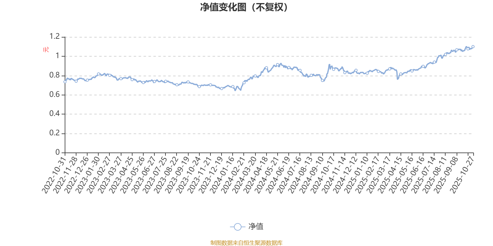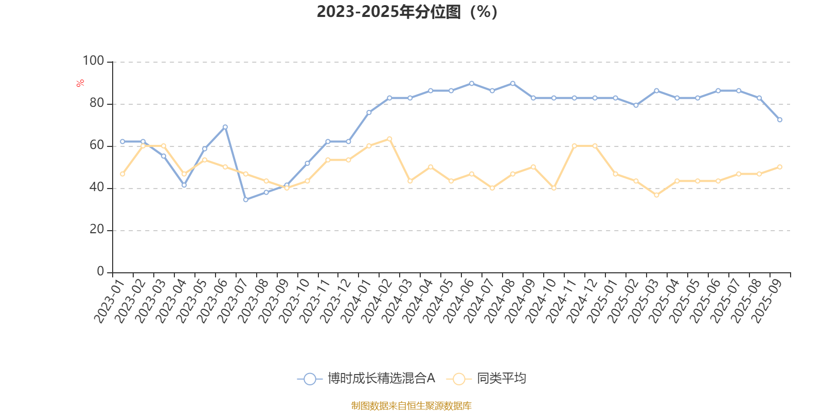 通过所选区间该基金净值增长率分位图,可以观察该基金与同类基金业绩比较情况。图为坐标原点到区间内某时点的净值增长率在同类基金中的分位数。