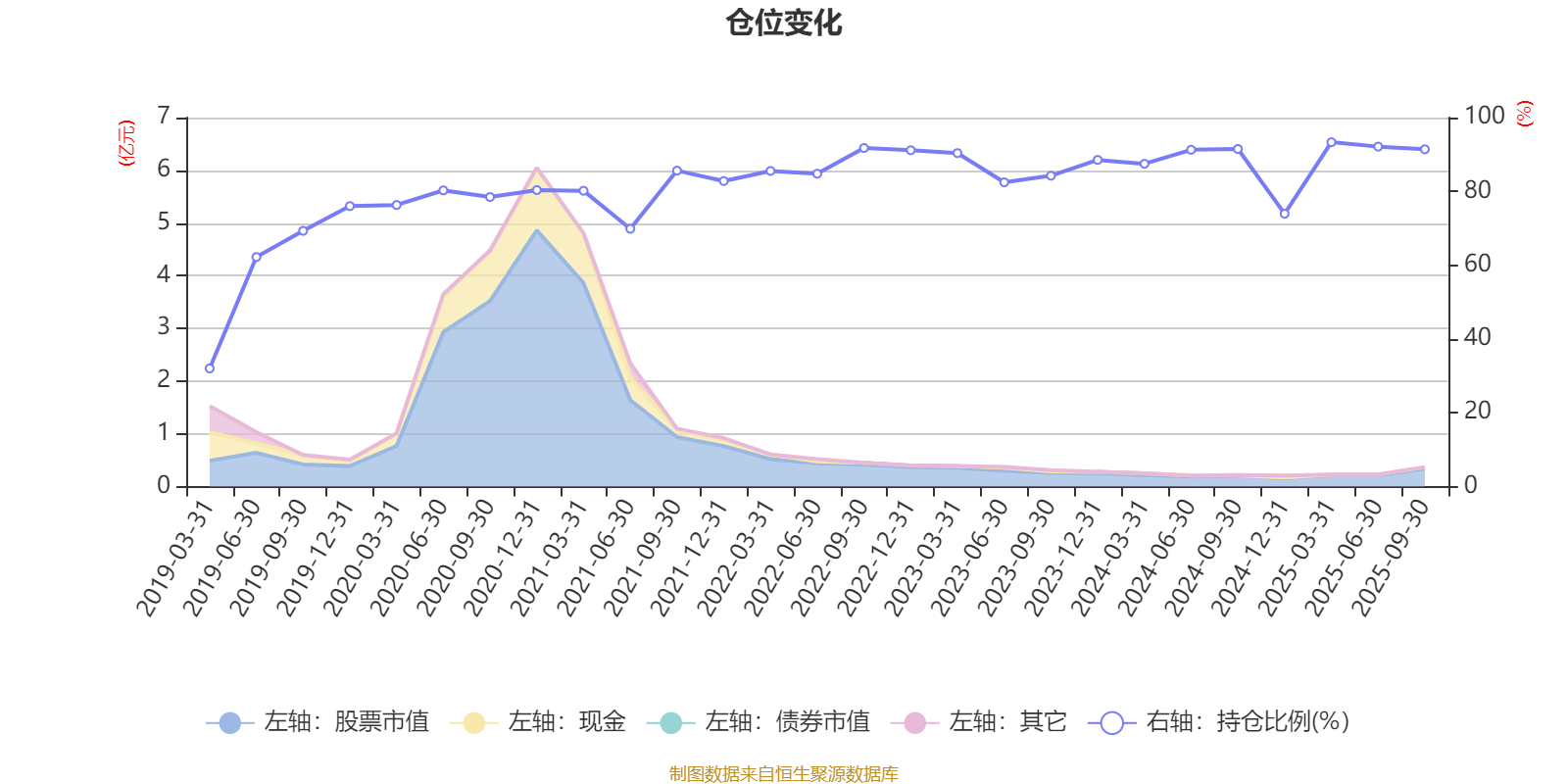据定期报告数据统计,近三年平均股票仓位为88.15%,同类平均为83.73%。2025年一季度末基金达到93.33%的最高仓位,2019年一季度末最低,为32.02%。