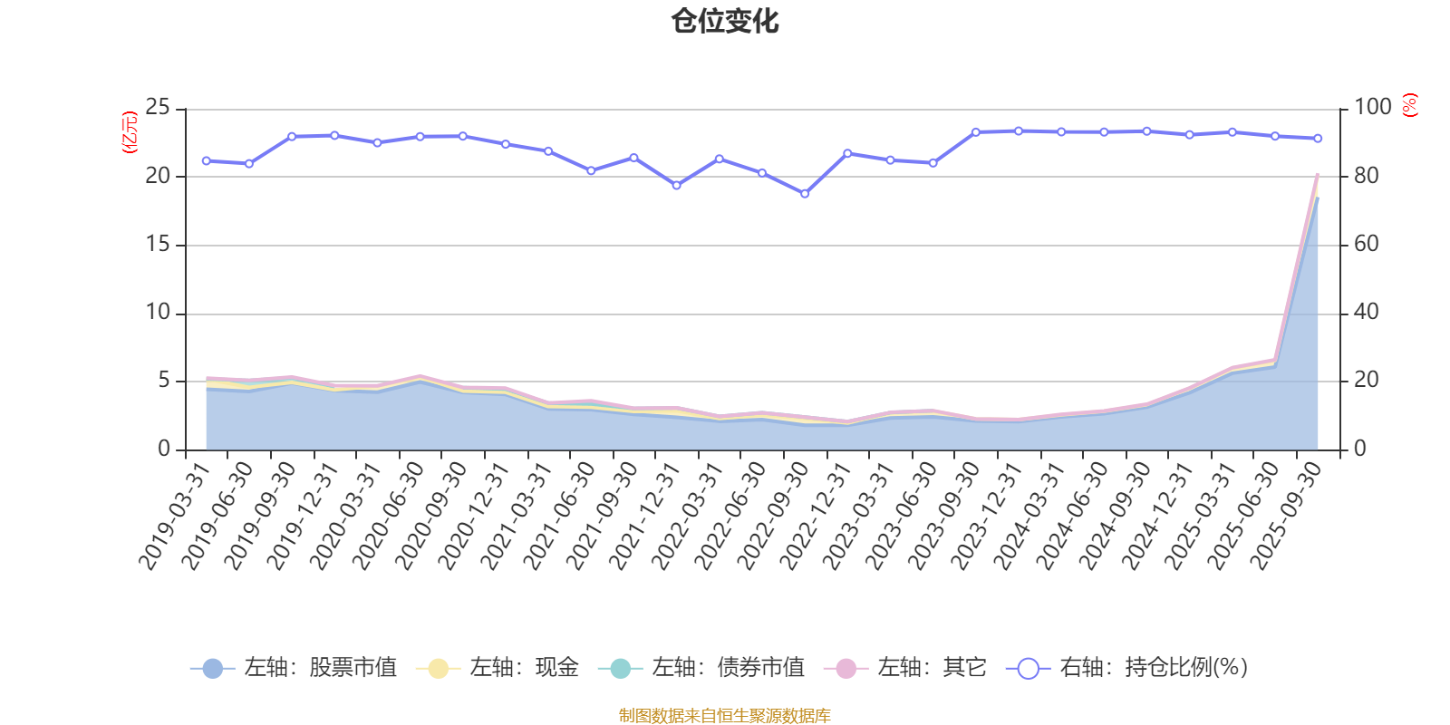 据定期报告数据统计,近三年平均股票仓位为90.94%,同类平均为72.35%。2023年末基金达到93.48%的最高仓位,2022年三季度末最低,为75.11%。