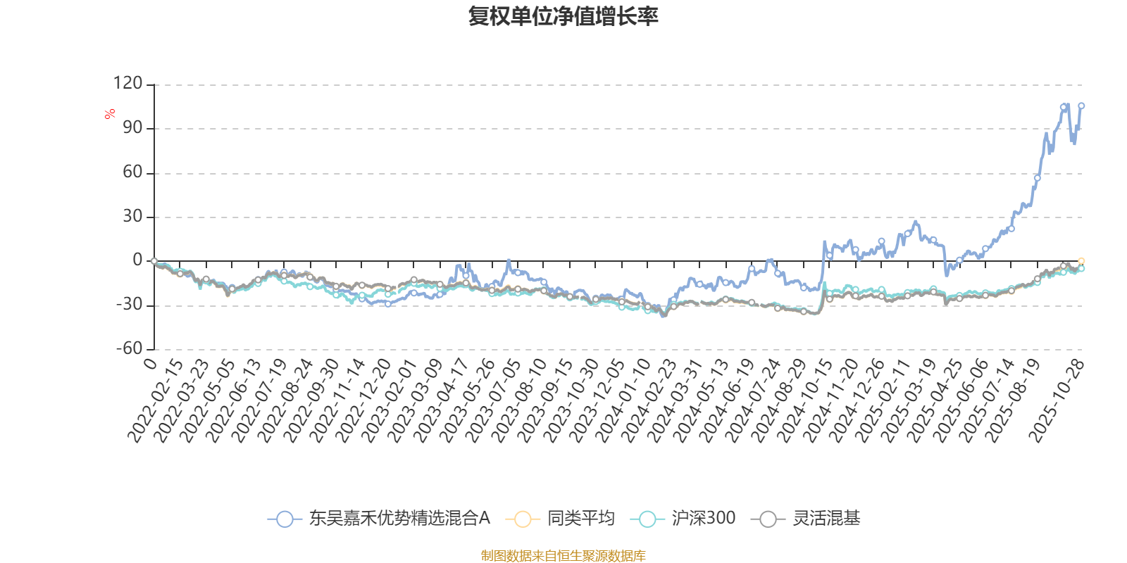 截至10月28日,东吴嘉禾优势精选混合A近三个月复权单位净值增长率为51.57%,位于同类可比基金37/1287;近半年复权单位净值增长率为106.96%,位于同类可比基金17/1287;近一年复权单位净值增长率为87.90%,位于同类可比基金28/1287;近三年复权单位净值增长率为164.94%,位于同类可比基金6/1286。