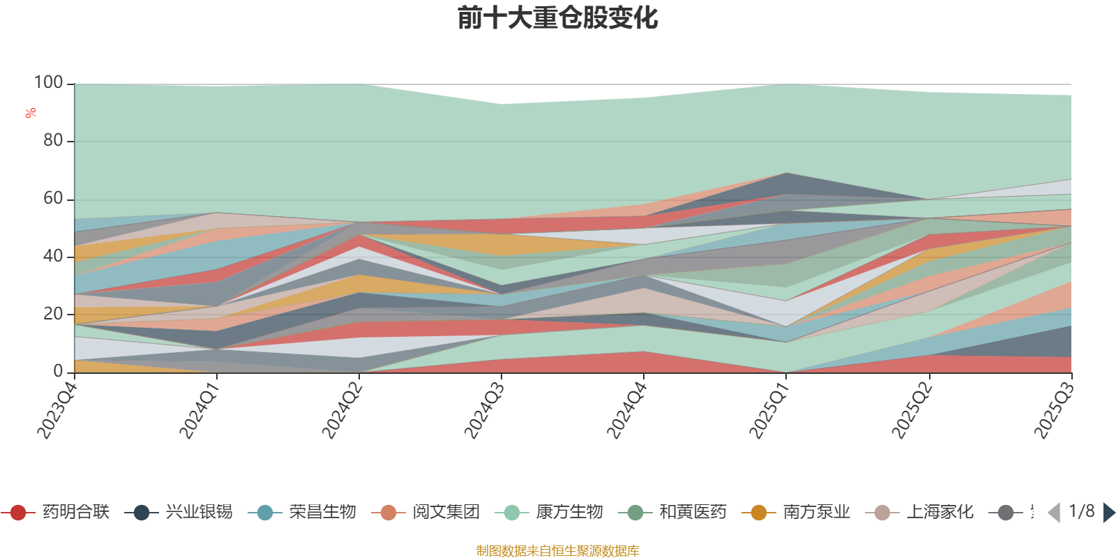 该基金持股集中度较高。截至2025年三季度末,基金十大重仓股分别是兴业银锡、阅文集团、和黄医药、康方生物、荣昌生物、藏格矿业、鹏欣资源、药明合联、心动公司、云铝股份。