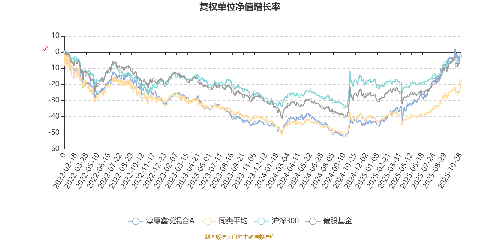 截至10月27日,淳厚鑫悦混合A近三个月复权单位净值增长率为20.40%,位于同类可比基金191/621;近半年复权单位净值增长率为45.40%,位于同类可比基金106/619;近一年复权单位净值增长率为69.56%,位于同类可比基金29/611;近三年复权单位净值增长率为29.30%,位于同类可比基金175/518。