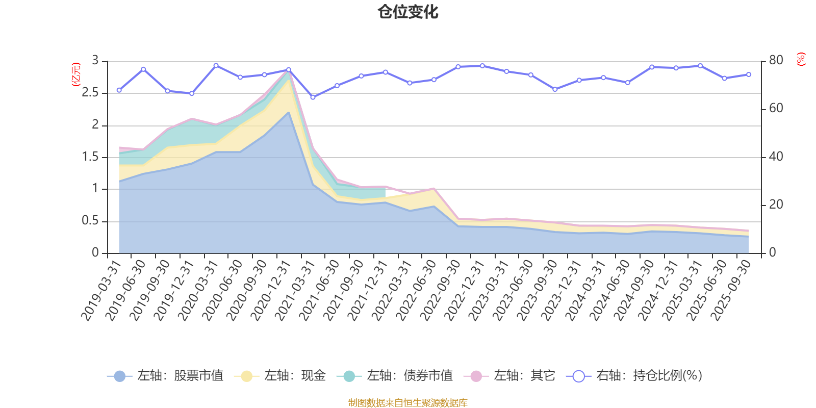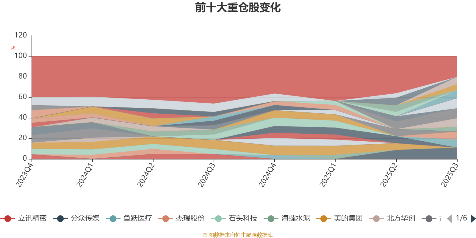 该基金持股集中度较高。截至2025年三季度末,基金十大重仓股分别是分众传媒、圆通速递、牧原股份、恒瑞医药、科沃斯、中宠股份、上汽集团、东鹏饮料、隆基绿能、泸州老窖。