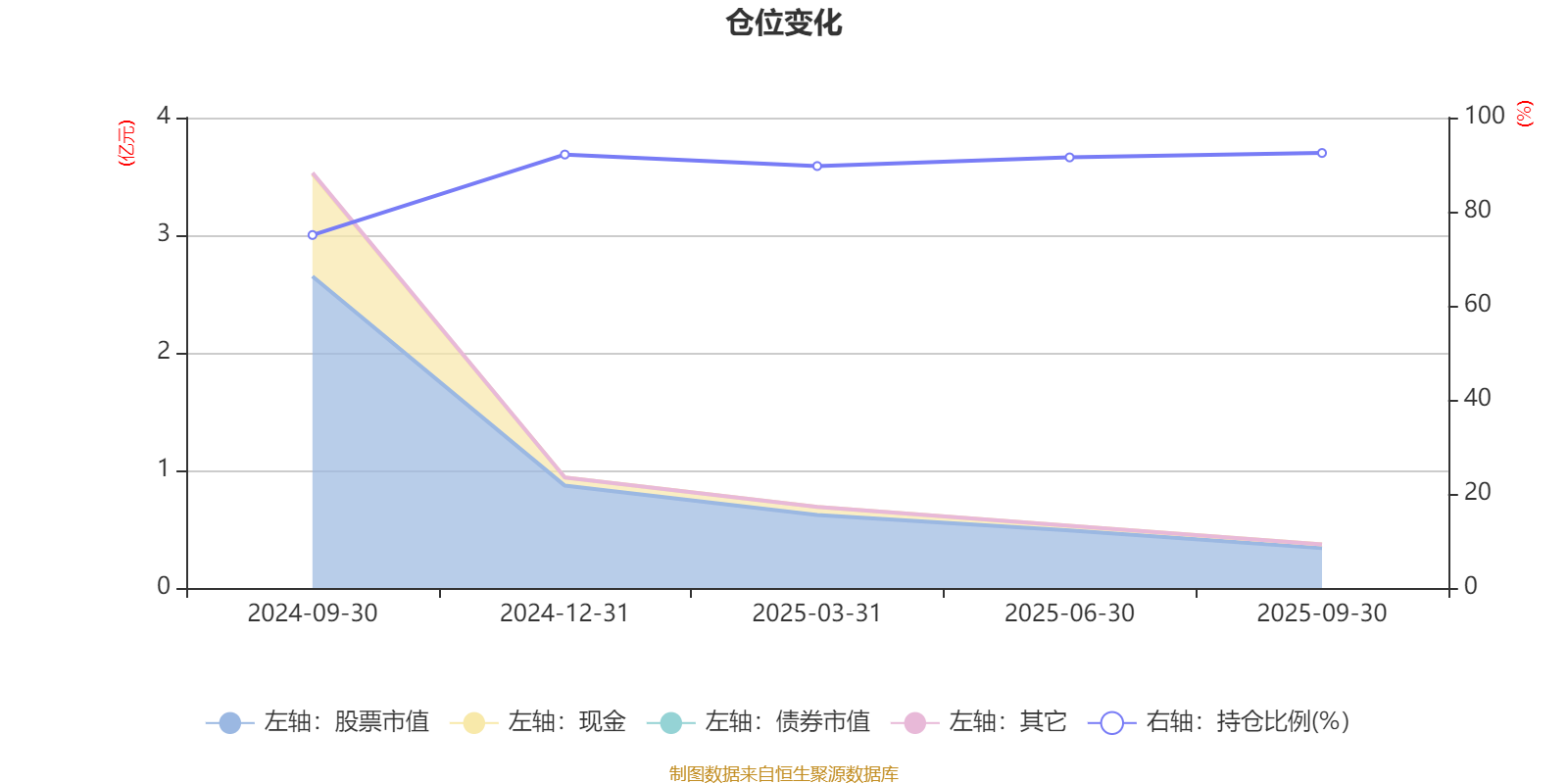 据定期报告数据统计,成立以来平均股票仓位为88.18%,同类平均为88.23%。2025年三季度末基金达到92.48%的最高仓位,2024年三季度末最低,为75.04%。