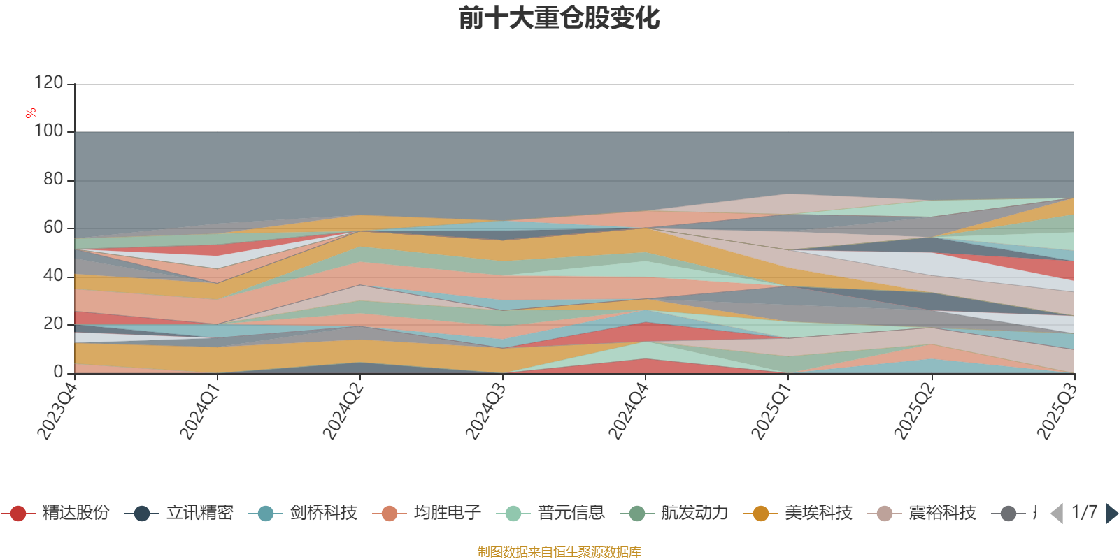 该基金持股集中度较高。截至2025年三季度末,基金十大重仓股分别是隆盛科技、震裕科技、歌尔股份、拓普集团、中科曙光、科华数据、阿里巴巴-W、中兴通讯、小米集团-W、沪电股份。
