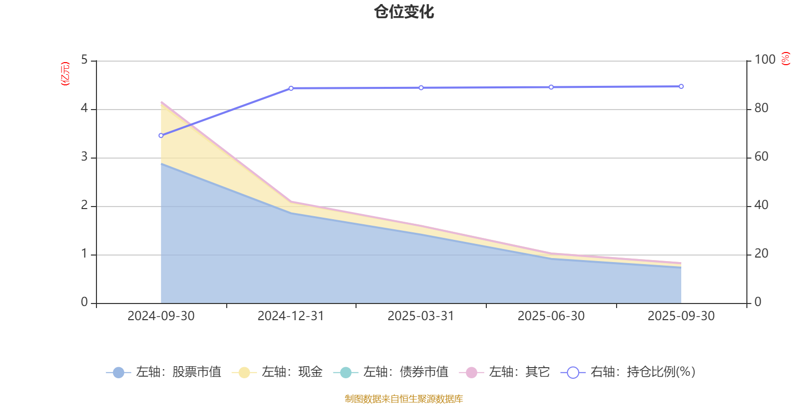 据定期报告数据统计,成立以来平均股票仓位为84.98%,同类平均为88.23%。2025年三季度末基金达到89.36%的最高仓位,2024年三季度末最低,为69.1%。