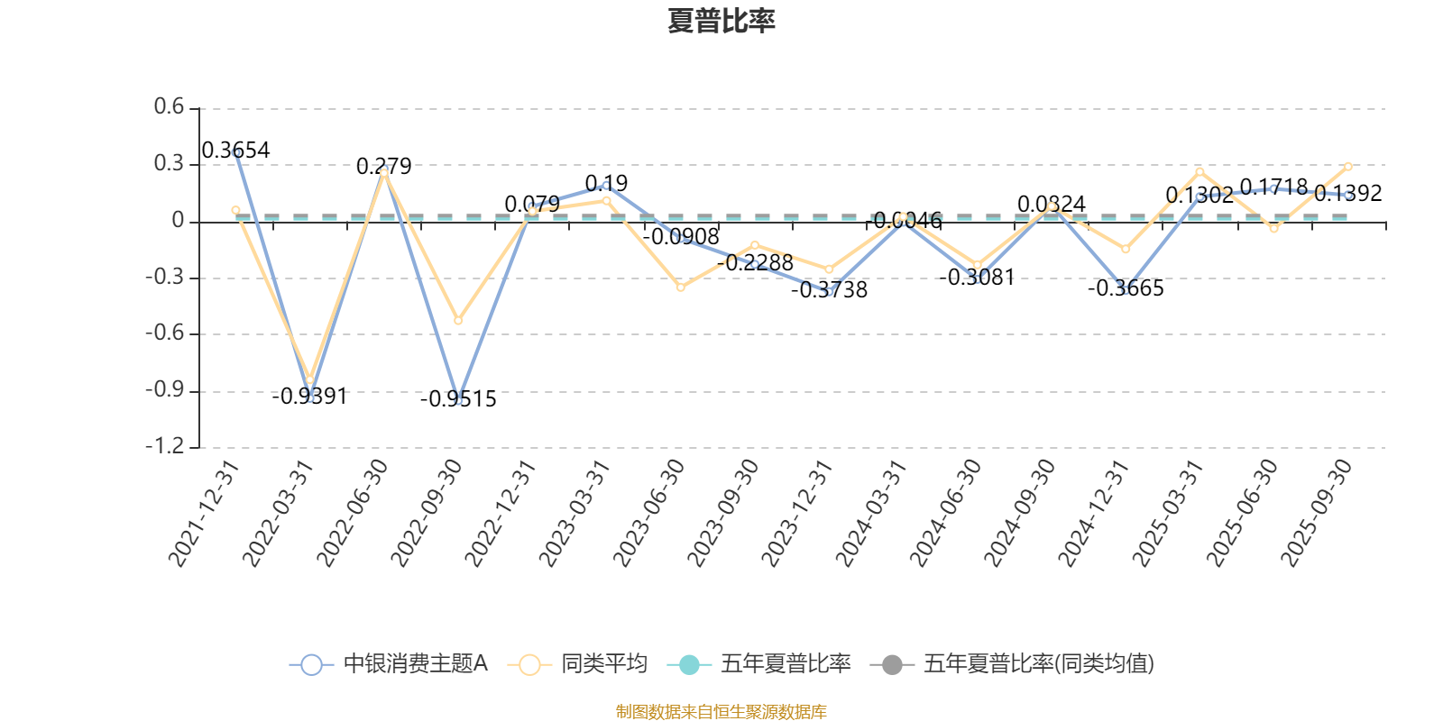 截至9月30日,基金近三年夏普比率为0.0584,位于同类可比基金52/74。