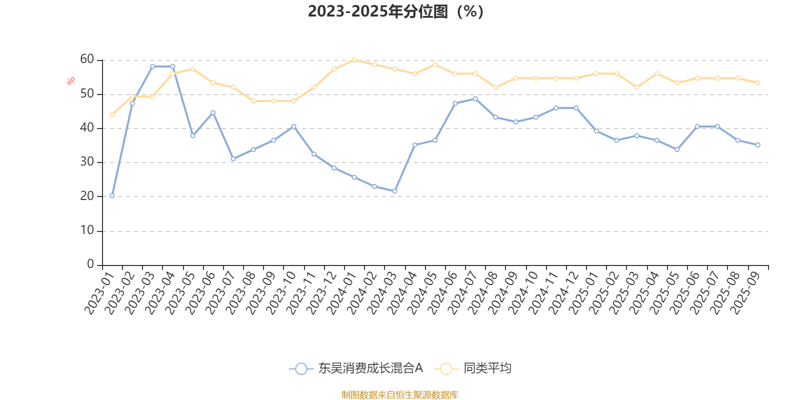 截至10月27日,东吴消费成长混合A近三个月复权单位净值增长率为-1.61%,位于同类可比基金65/85;近半年复权单位净值增长率为3.73%,位于同类可比基金52/85;近一年复权单位净值增长率为2.71%,位于同类可比基金52/82;近三年复权单位净值增长率为-4.17%,位于同类可比基金46/74。