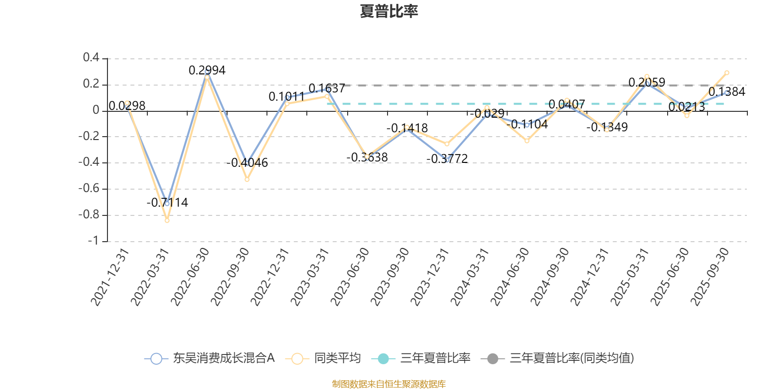 截至9月30日,基金近三年夏普比率为0.0521,位于同类可比基金56/74。