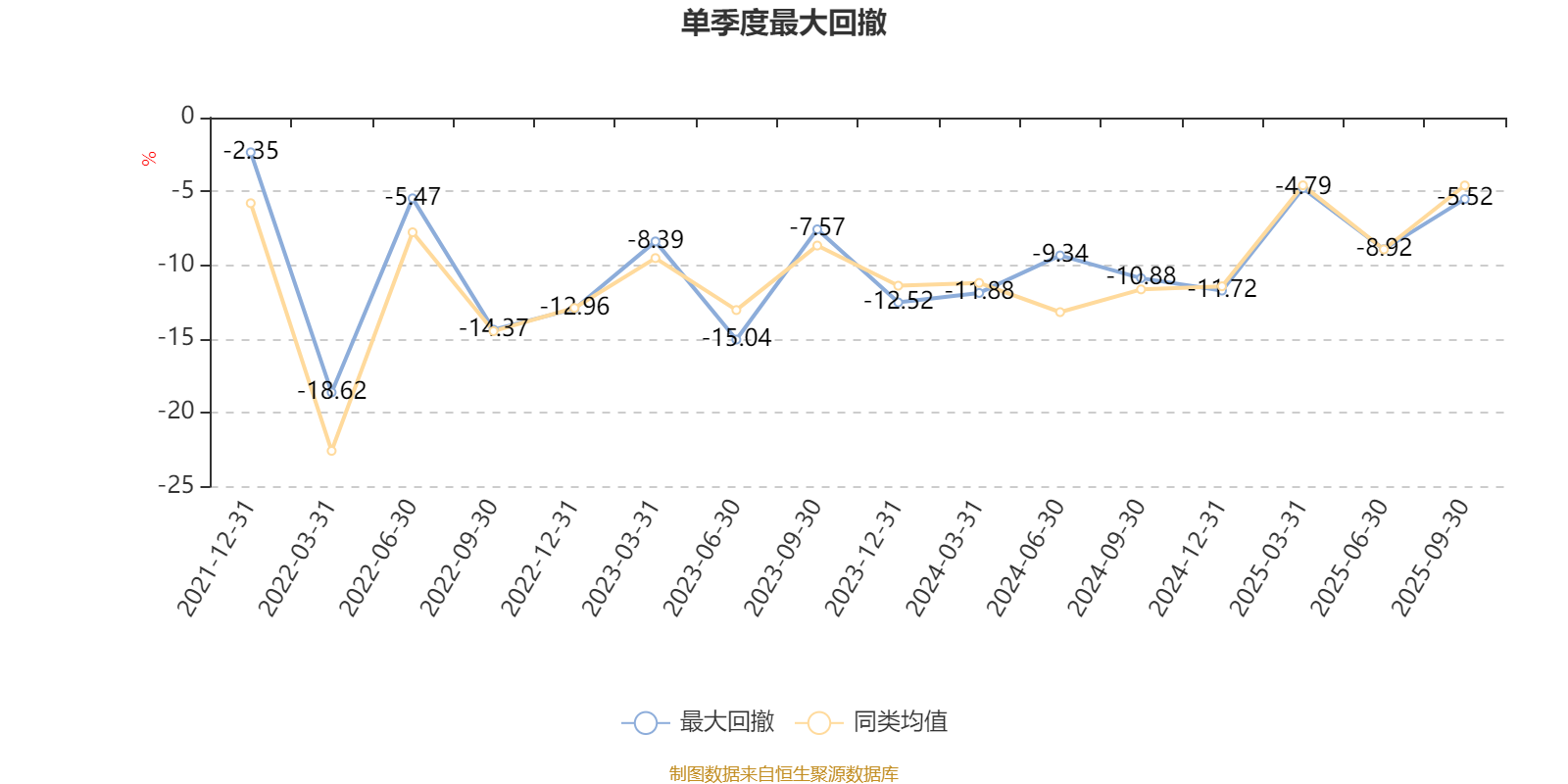 截至10月27日,基金近三年最大回撤为36.54%,同类可比基金排名37/74。单季度最大回撤出现在2022年一季度,为18.62%。