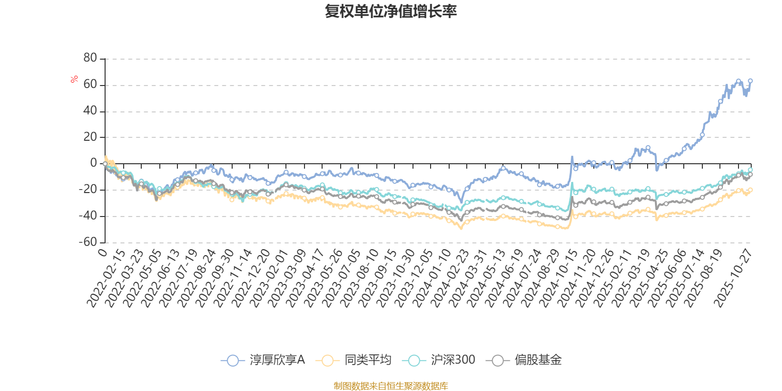 截至10月27日,淳厚欣享A近三个月复权单位净值增长率为23.76%,位于同类可比基金157/621;近半年复权单位净值增长率为58.98%,位于同类可比基金51/619;近一年复权单位净值增长率为63.18%,位于同类可比基金43/611;近三年复权单位净值增长率为84.36%,位于同类可比基金20/518。